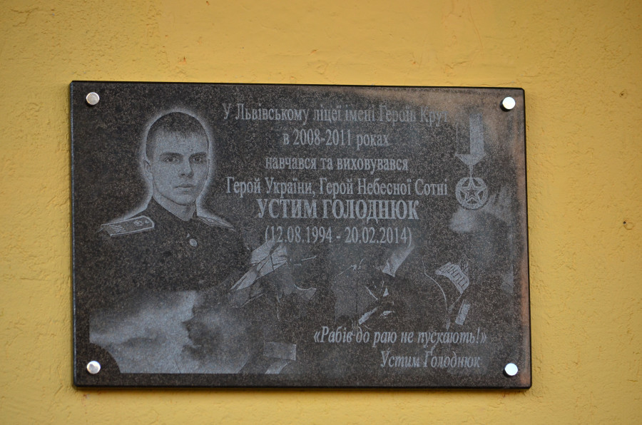 Сьогодні, 19 лютого, у Львівському державному ліцеї ім. Героїв Крут (вул. Пасічна, 68) відкрили пам’ятну дошку Герою України, Герою Небесної Сотні Устиму Голоднюку.