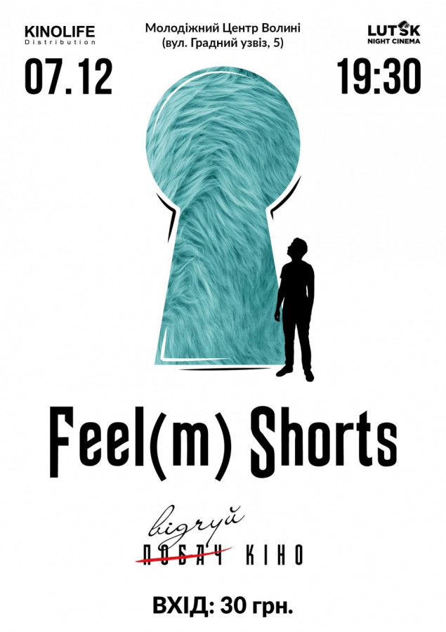 У п'ятницю, 7 грудня, Молодіжний центр Волині (вул. Градний Узвіз, 5) прийме глядачів, які полюбляють короткометражне кіно. Подія із назвою «Feel(m) Shorts» пройде в Луцьку лише цього п’ятничного вечора. Захід розпочнеться о 19:30.