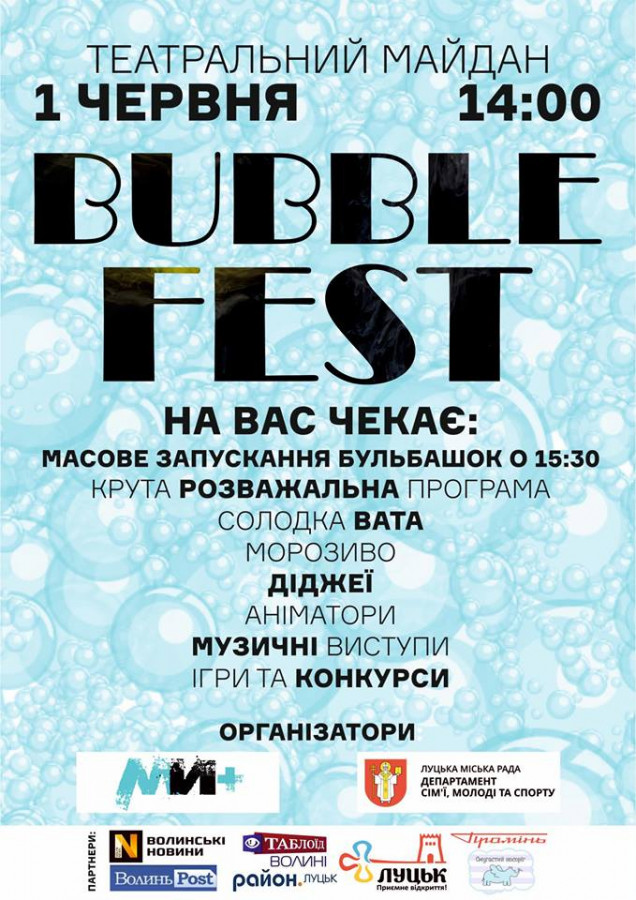 Організатори зазначили, масовий запуск бульбашок відбудеться о 15:30, людей розважатимуть виступами діджеїв, іграми, конкурсами.