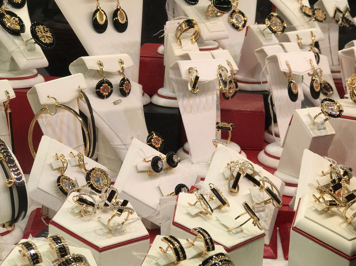 Буде представлено великий вибір золотих та срібних виробів. А також будуть прикраси із дорогоцінним камінням, в тому числі з діамантами, ексклюзивні та авторські роботи.