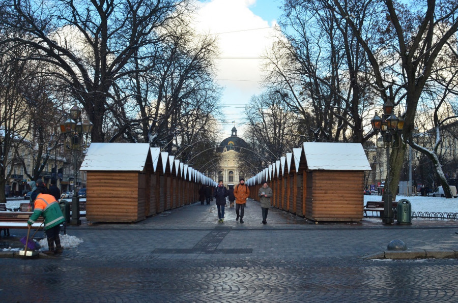 У Львові триває підготовка до зимових свят: на площі Ринок та проспекті Свободи вже змонтували павільйони Різдвяного ярмарку.
