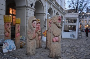 Сьогодні на площі Ринок перед входом в міську раду почали монтувати авторську інтерактивну Різдвяну шопку. Сценка шопки складається із п’яти двометрових фігур, вирізьблених із тополі, які розмальовували діти зі Львова.