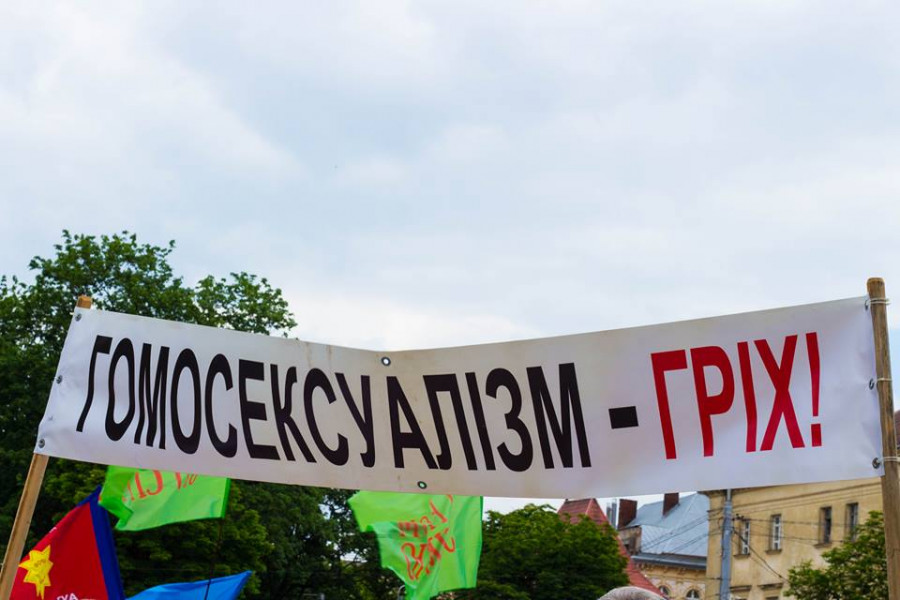 Під час суспільних акцій до Дня матері та сім'ї вийшли люди з гомофобними банерами.