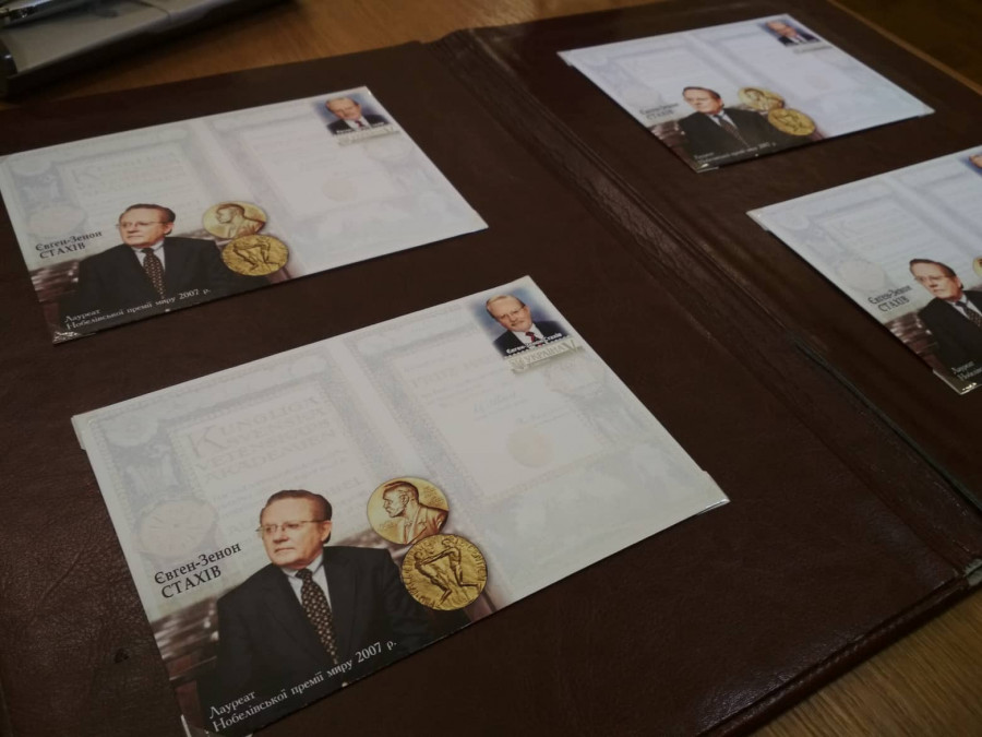 Сьогодні, 28 лютого, у стінах Львівської ОДА урочисто погасили маркований конверт з нагоди 75-річчя від дня народження лауреата Нобелівської премії миру Євгена-Зенона Стахіва, який має українське коріння.