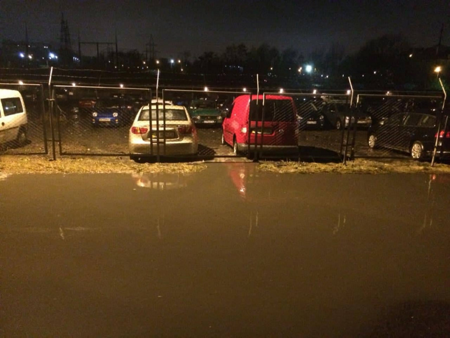 Неочищені стоки впродовж тривалого часу валили нестримним потоком, затопивши частину вул. Чукаріна і автостоянку, що поряд.