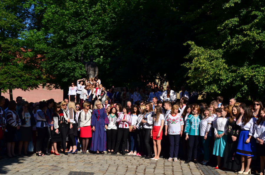 Близько двох сотень працівників Львівської ОДА та Львівської обласної ради під стінами Львівської адміністрації в національному вбранні спільно виконали Гімн України. У такий спосіб чиновники області долучилися до святкування Дня вишиванки.