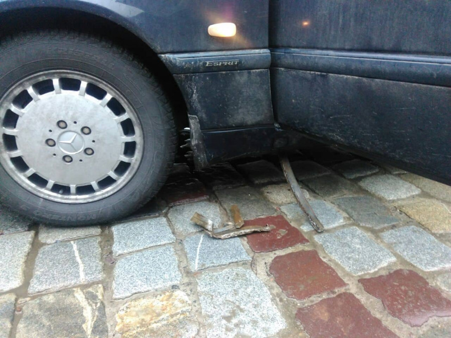 На перехресті вулиць Вітовського і Сахарова у Львові трамвайна рейка вигнулася і пробила дно автомобіля.