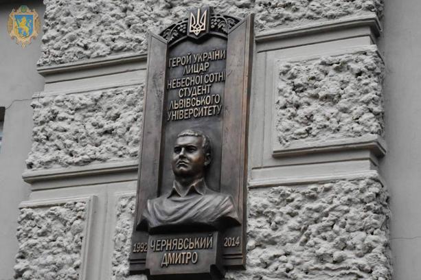 Сьогодні, 21 листопада, у 5-ту річницю Революції Гідності і Свободи, на будівлі економічного факультету ЛНУ ім. Івана Франка, відкрили меморіальну дошку Герою України Дмитрові Чернявському, повідомили у Львівській ОДА.