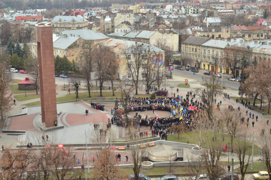 Зокрема, вже традиційно львів’яни зібралися біля пам’ятника Степану Бандері, де разом з владою поклали квіти, а священнослужителі провели панахиду. Опісля відбулося громадське віче.