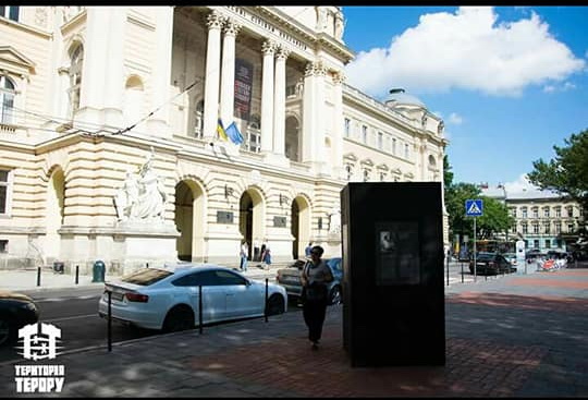 Як повідомила директорка музею «Територія терору» Ольга Гончар, напередодні зі стенду, розташованого на площі перед університетом ім. І. Франка, зникла інформаційна таблиця. Працівники музею одразу написали заяву про крадіжку. А сьогодні Ольга Гончар виявила крадіжку самого інформаційного куба.