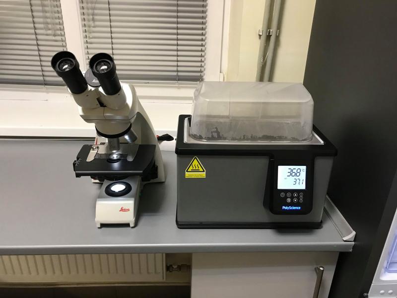 - Мікроскоп Leica DM500 LED — 36 738,14 грн. Цей прилад необхідний для діагностики патологічних станів тварин-донорів перед забором крові. Використання мікроскопа важливе, адже дає змогу попередити потрапляння в програму донорів хворих тварин.