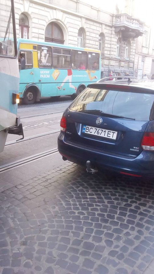 Як йдеться у повідомленні, водій автомобіля на площі Митній заблокував рух трамваю №7