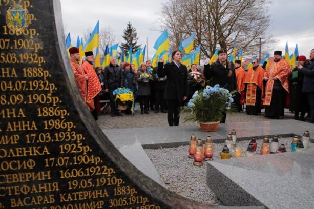 «74 роки тому тут співали українських пісень, тут «Отче наш» промовляли українською мовою, тут веселились діти у любові своїх батьків. Тут люди будували мрії про своє майбутнє. Це все обірвалось в один день. Обірвалось лише тому, що хтось не хотів, щоб тут жили українці, щоб тут передавалась пам`ять про наші покоління. Сьогодні на цьому місці ми задаємо собі запитання «Чому це сталось?» І кожен з нас знає відповідь: тому що тоді не було Української держави, не було єдності. Ми сьогодні тут, тому що ми маємо могутню державу, у нас є сильна армія, яка за тисячу кілометрів звідси боронить весь цивілізований світ від нашестя ворога, щоб він не вбивав нові й нові покоління. Українська держава дбає і буде дбати про всіх українців, які опинились за межами держави. Україна поважає, береже і берегтиме пам`ять свого народу», - наголосив під час заходу голова Львівської ОДА Олег Синютка.