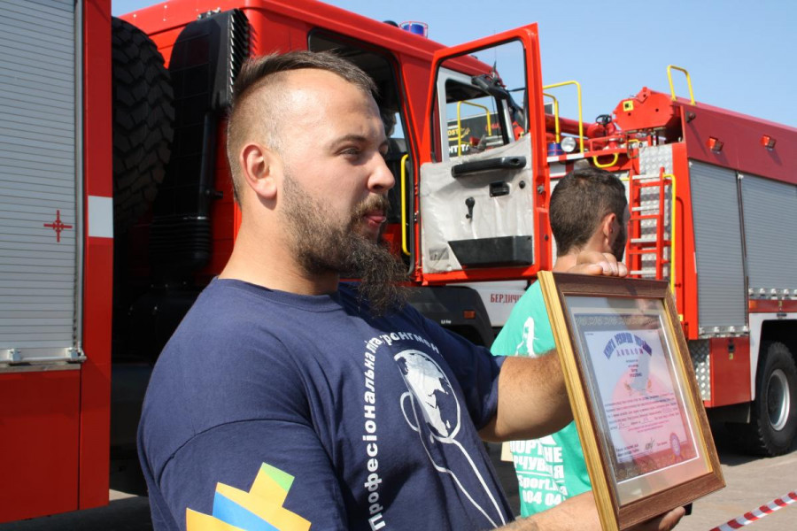 «Встановлено рекорд України у категорії “Спорт, спецпідготовка” з тяги трьох пожежних автомобілів однією людиною на максимальну відстань із застосуванням драбини. Автор рекорду – Віктор Прокопенко. Зафіксовані результати : загальна вага трьох пожежних автомобілів 42600 кг, подолана дистанція – 12 м, затрачений час – 37 секунд», – йдеться у дипломі, який підписав голова наглядової ради «Книги рекордів України» Олег Іваненко. Цей документ організатори заходу показали журналістам на підтвердження досягнення.