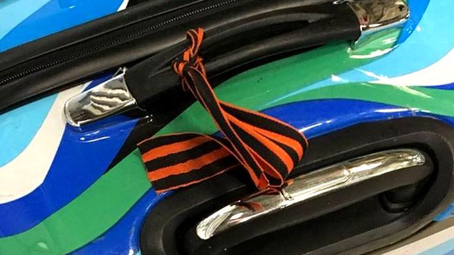Двох громадян Росії, які прилетіли до аеропорту "Бориспіль" з Мінська, відправили назад до білоруської столиці через георгіївські стрічки на їхньому багажу.