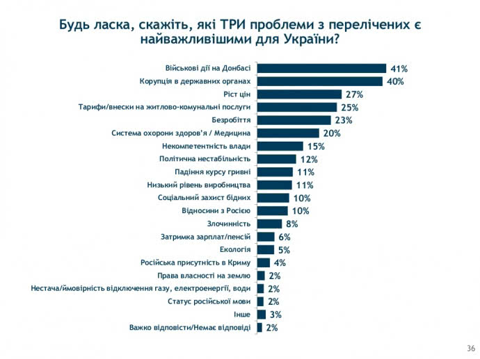 Так, згідно з результатами опитування, найголовнішими проблемами країни українці вважають: