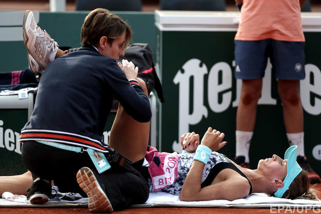 Українка отримала пошкодження задньої поверхні бедра у середині другого гейму. Спортсменка брала медичний тайм-аут, але продовжити матч так і не змогла .