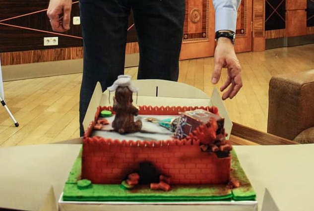 Главу Мінінфраструктури Володимира Омеляна привітали з Днем народження тортом у формі руїн Кремля.