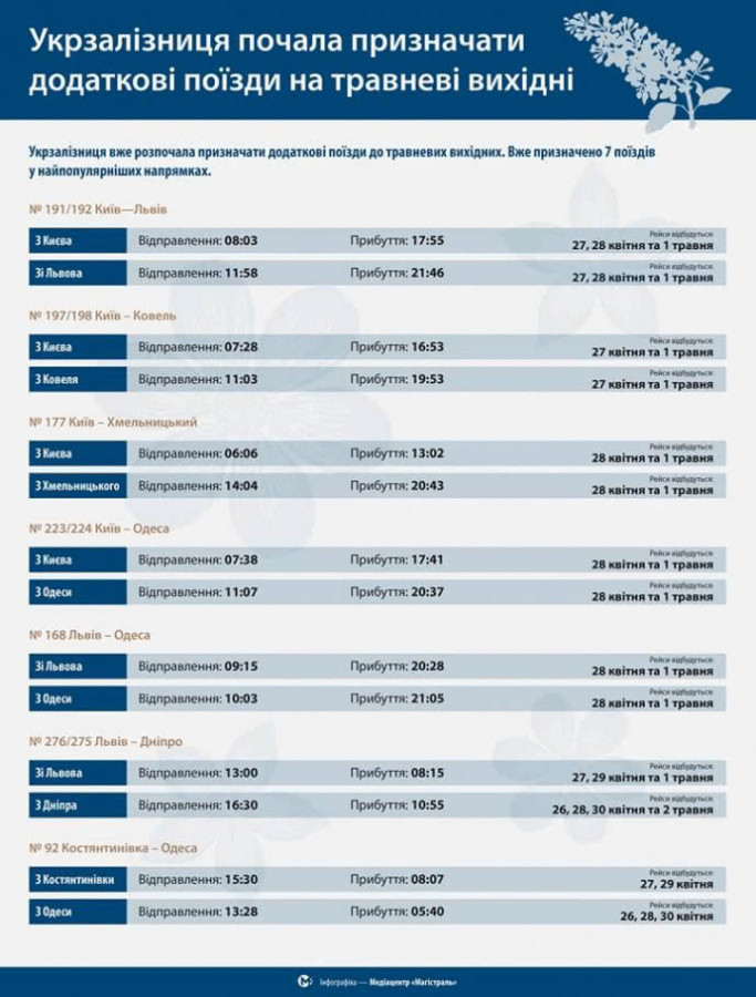 поїзди на кінець квітня. Нагадаю, українці відпочиватимуть 4 дні – з 28 квітня
