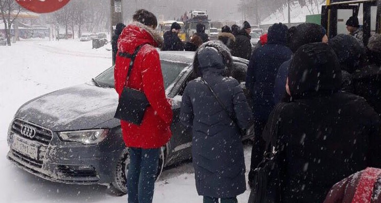 Сьогодні вдень, 23 січня, в Києві водійка не впоралася з керуванням та виїхала своєю "Audi" на громадську зупинку.