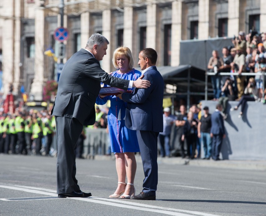 Президент Петро Порошенко присвоїв звання Герой України з удостоєнням ордена «Золота Зірка» лейтенанту Олегу Довгому посмертно та лейтенанту Володимиру Сосніну.