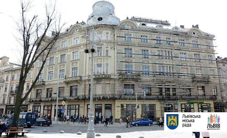 Як розповіла Лілія Онищенко, начальник управління охорони історичного середовища ЛМР, «Це кутовий будинок на розі вул. Коперника і пр. Свободи. У цьому будинку величезна проблема з дахом, зокрема, з куполом даху — його в будь-який момент може знести вітром. Цей купол має цинкові фігурні зображення, які зроблені методом чеканки. Це дуже складний дах. Тендер на проведення робіт виграло ПП „Володар-Маркет“. Будемо їм всіляко допомагати і сприяти, щоб вони зробили цей об’єкт. На ці роботи маємо виділено з міського бюджету 1 млн. грн. Однак загальна вартість більше 3 млн. грн».