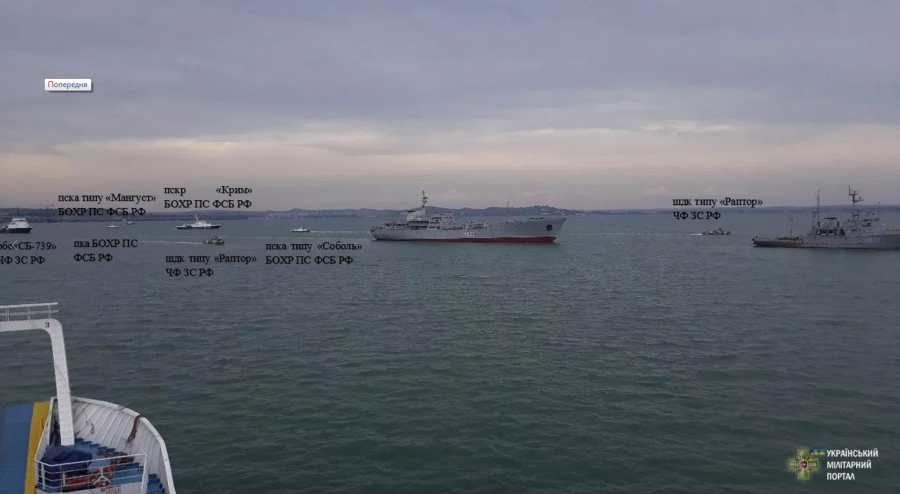 Перехід до Керченської протоки та через неї проходив у складній обстановці. На Чорному морі кораблі українських ВМС безпосередньо супроводжувались розвідувальним кораблем чорноморського флоту «Приазов’я» та прикордонними сторожовими кораблями РФ «Аметіст» та «Дон». В Керченській протоці для безпосереднього супроводження було задіяно більше 10 кораблів і катерів ФСБ та Чорноморського флоту РФ. Літаки країни агресора неодноразово здійснювали обліт наших кораблів, у тому числі на гранично низьких висотах.