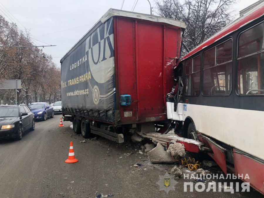 Поліцейські попередньо встановили, що під час руху у вантажівки від’єднався причеп і врізався у тролейбус, який у цей момент здійснював посадку-висадку пасажирів на зупинці, повідомили в прес-службі поліції Рівненської області.