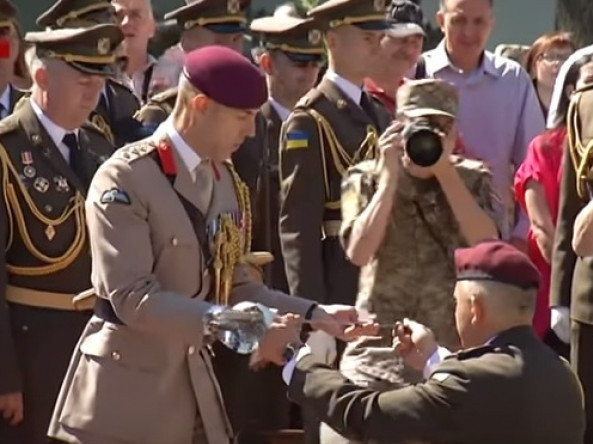 Випускника Національного університету оборони імені Івана Черняховського генерал-майора Андрія Ковальчука нагородили особливою відзнакою – мечем Королеви Великої Британії.