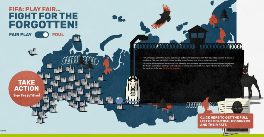 Автори карти ставлять собі за мету напередодні чемпіонату світу з футболу звернути увагу вболівальників на порушення прав людини в Росії.