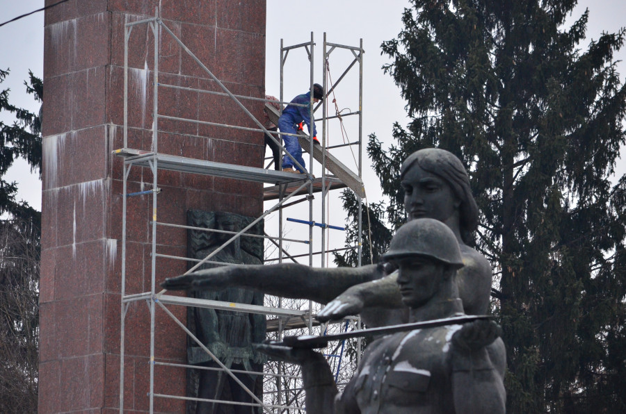 Сьогодні, 23 січня, біля аварійного Монумента Слави на вул. Стрийській у Львові, підрядники встановлюють та укріплюють риштування. Про це з місця події повідомив кореспондент WN.